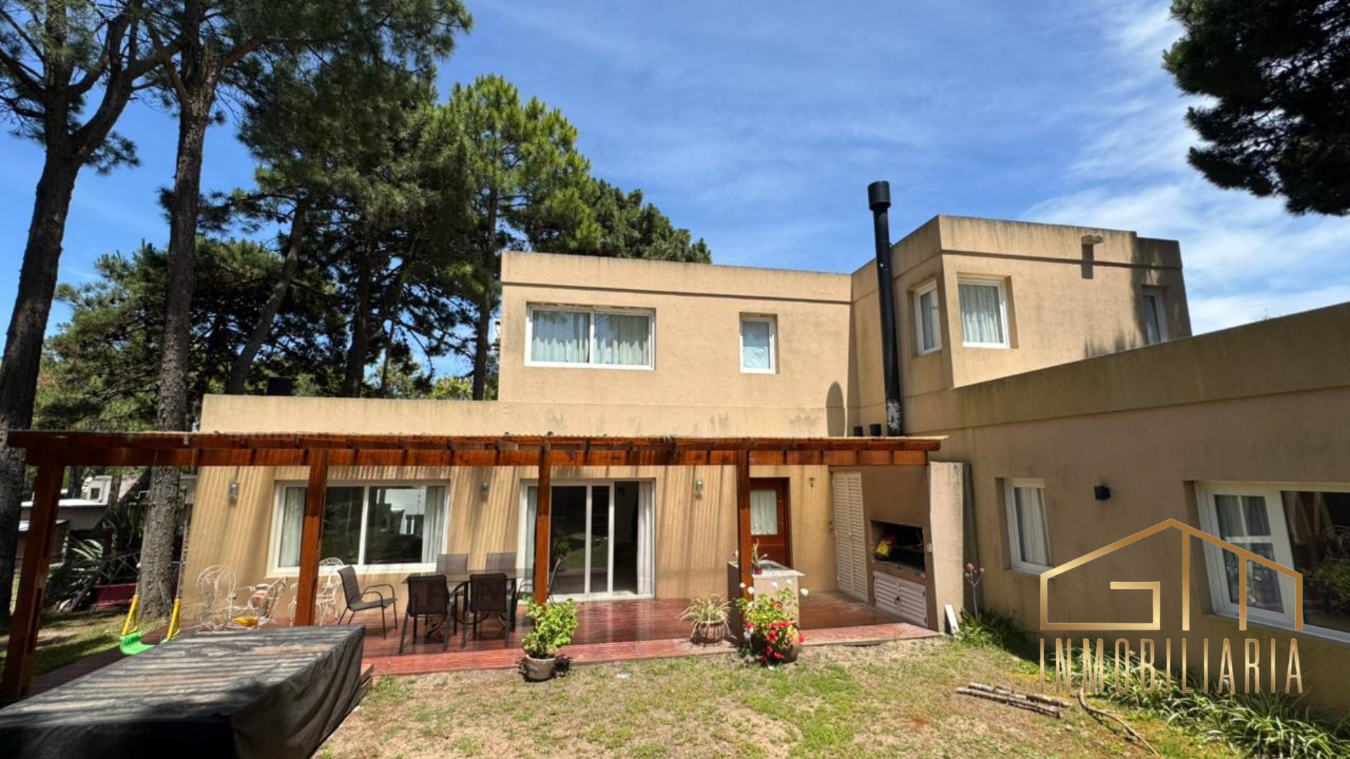 Esta encantadora casa en Pinamar de dos plantas combina comodidad y espacios pensados para disfrutar en familia o con amigos. En la planta baja se encuentra un dormitorio matrimonial en suite, junto a un amplio ambiente integrado que reúne living, comedor y cocina, generando un espacio moderno y funcional. En la planta alta se distribuyen tres dormitorios: uno con cama matrimonial, otro con dos camas cuchetas y un tercero con dos camas individuales. Los dos primeros comparten un baño, lo que brinda practicidad y comodidad para grupos grandes o familias numerosas. El exterior es uno de los puntos más destacados: una galería semicubierta con parrilla y un espacio ideal para reuniones y momentos de disfrute al aire libre, complementado por un jacuzzi que aporta un toque de relax y distinción.