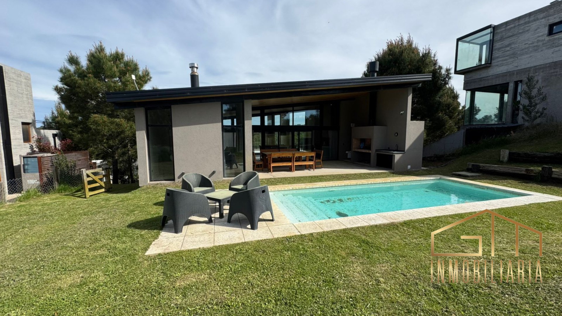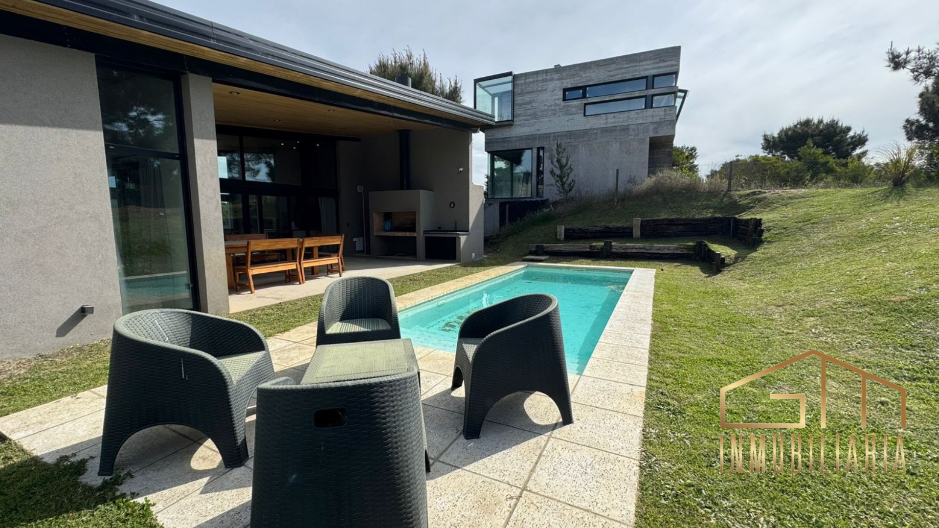 Hermosa casa ubicada en Barrio Ecuestre, lote 118, en Costa Esmeralda. La propiedad se desarrolla en dos plantas y cuenta con subsuelo. En planta baja dispone de tres dormitorios: uno de ellos en suite, y los otros dos con dos camas de una plaza cada uno, que comparten un baño completo. En este nivel también se encuentra una pileta climatizada interior, ideal para disfrutar durante todo el año. La planta alta ofrece un amplio área social compuesta por un living comedor integrado a la cocina, con excelente luminosidad y confort. En el exterior, se destaca una galería semicubierta con parrilla y un cómodo espacio social para disfrutar de reuniones al aire libre, acompañadas de una pileta exterior. Finalmente, en el subsuelo la propiedad cuenta con cochera y lavadero, completando así una propuesta funcional, moderna y confortable en uno de los barrios más exclusivos de Costa Esmeralda.