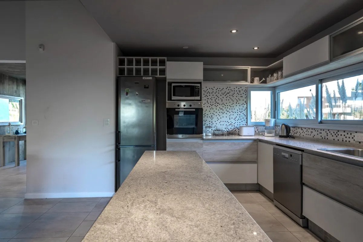 Hermosa casa ubicada en el exclusivo barrio Residencial 1, lote 193, sobre un amplio terreno de 1000 m² en cul de sac, que garantiza tranquilidad y privacidad. La propiedad está construida en una sola planta y ofrece ambientes luminosos y funcionales. Al ingresar, un hall de recepción conduce al living comedor integrado, la cocina totalmente equipada, lavadero independiente y entrada de servicio. La casa cuenta con una galería con parrilla, ideal para disfrutar reuniones al aire libre. Dispone de tres dormitorios y tres baños: dos en suite (uno con cama matrimonial Queen y otro con dos sommiers de una plaza), y un tercer cuarto con dos sommiers de una plaza más una cama carrito adicional. La capacidad máxima es de 6/7 personas. Todos los dormitorios poseen cortinas roller blackout y amplios placards. La casa está totalmente equipada: sommiers de calidad, dos Smart TV (en el living comedor y en la suite), lavavajillas, horno eléctrico, anafe, microondas, lavarropas, cafetera, pava eléctrica, licuadora y tostadora. Además, cuenta con alarma, WiFi de fibra óptica 300 MB, DIRECTV, aire acondicionado frío/calor en todos los ambientes, losa radiante y gas natural. En el exterior, se destaca el jardín parquizado con riego automático y luces exteriores programadas, junto a una piscina con cerco de seguridad y luces LED, que brinda un espacio perfecto para el relax y el disfrute en familia.